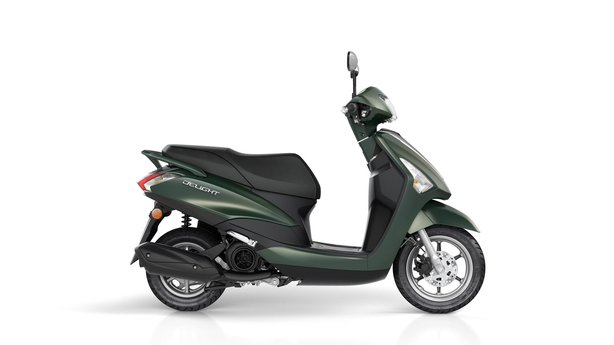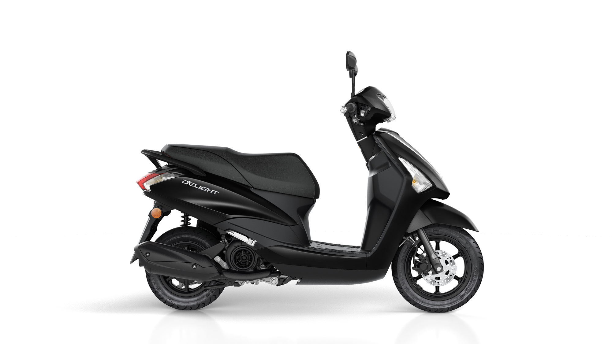 Retro stilizirano prednje svjetlo, bijeli instrumenti te stilizirano stražnje svjetlo doprinose bezvremenskom dobrom izgledu - dok karakteristike kao spremište ispod sjedala, otvoreno spremište za rukavice i oslonci za noge suvozača osiguravaju funkcionalnost i moderan izgled. Prednja disk kočnica, aluminijski naplatci te živahan i štedljiv 114 ccm, 4-taktni agregat, novi D'elight nudi jaku puno za malu cijenu.